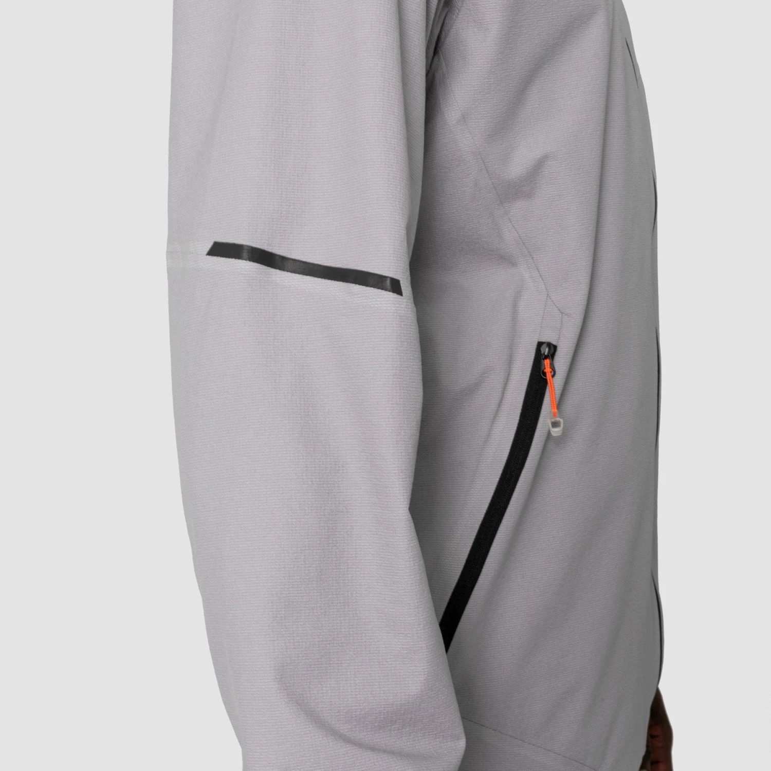 The technical, super-lightweight and waterproof hardshell weighs under 200 grams and impresses with a 2.5-layer construction with a water column of 10,000 millimeters. In addition, the seams of the athletically cut jacket are fully welded so that no water can penetrate here either. Nevertheless, the jacket remains extremely breathable at 40,000 g/m²/24h: 40 liters of water vapor per square meter can evaporate within 24 hours. This high functionality is achieved by the durable outer fabric with polyurethane membrane and the additional, protective insert on the back.