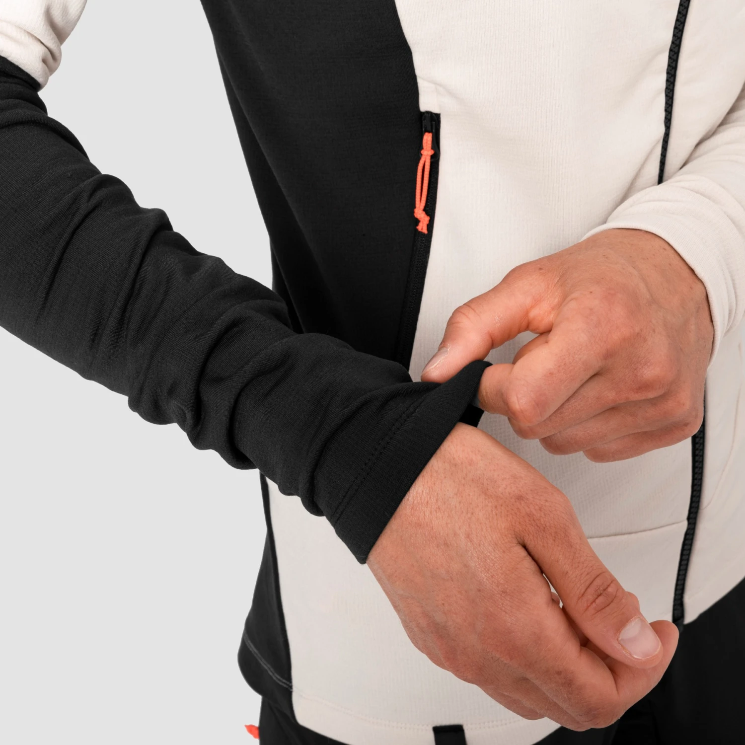 The Sella Merino hooded jacket is an athletically cut and highly breathable midlayer made from a functional mix of materials: The Merino Polarlite material combines polyamide with fine merino wool. Thanks to the merino material with a slightly roughened inside, the jacket is comfortable on the skin, while at the same time merino wool naturally brings odor-neutralizing properties, which results in fewer unpleasant odors. The four-way stretch material and the underarm gussets ensure sufficient freedom of movement.
